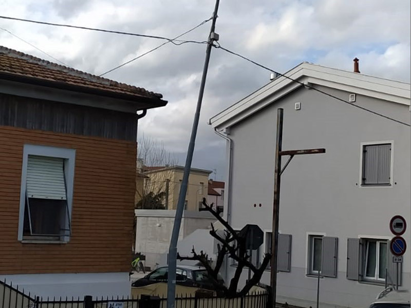 Pino caduto lungo stradone Misa a Senigallia - Danni a illuminazione pubblica