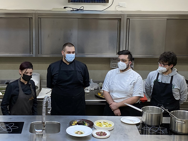 Corso di cucina '4 ristoranti' al Panzini - La Sella di Pitino - chef Michela Domizi e staff