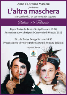 Tra pochi giorni sarà Carnevale ma per Anna e Lorenzo quello del 2022 sarà molto speciale, festeggeranno infatti il loro venticinquesimo anno a Venezia. Ad onorare le loro partecipazioni in Laguna ci ha pensato Catia Ventura che con la sua casa editrice Ventura Edizioni, pubblica il volume fotografico L’altra maschera – Marconilandia, un costume per sognare”.