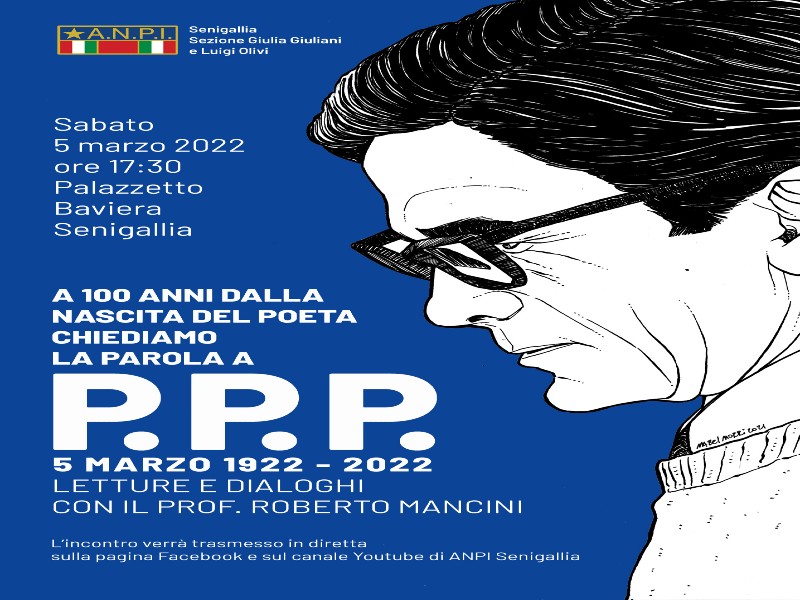 Con il titolo “A 100 anni dalla nascita del Poeta, chiediamo la parola a Pier Paolo Pasolini – 5 marzo 1922 – 2022”, ANPI Senigallia Sezione Giulia Giuliani e Luigi Olivi presenta letture e dialoghi con il prof. Roberto Mancini.
