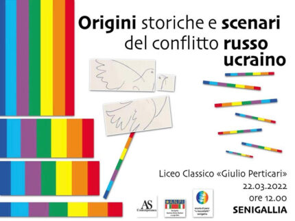 Il nuovo incontro si tiene martedì 22 a Senigallia, con le classi quarte e quinte del Liceo classico “Perticari”, dalle 11.30 alle 13.00: per l’Associazione intervengono il presidente prof. Marco Severini e la direttrice scientifica prof.ssa Lidia Pupilli, per l’Anpi Mabel Morri e Paolo Fuligni, e il prof. Francesco Spinozzi per la Scuola di Pace: l’incontro s’intitola “Origini e scenari del conflitto russo-ucraino”.
