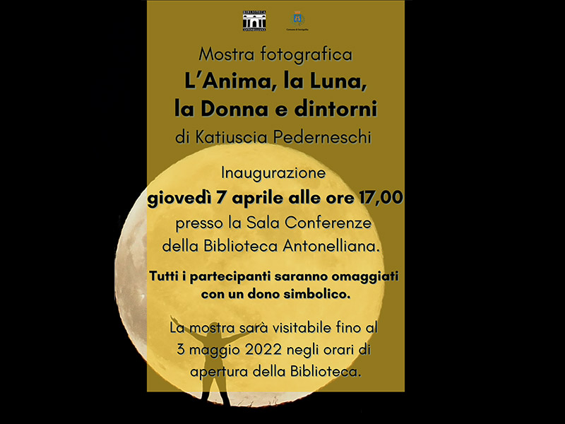 Giovedì 7 aprile alle ore 17,00 presso la Sala Conferenze della Biblioteca Antonelliana inaugurazione della Mostra Fotografica “L’Anima, la Luna, la Donna e dintorni” di Katiuscia Pederneschi.