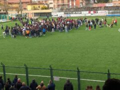I quasi 2.000 del Bianchelli hanno potuto festeggiare la matematica promozione dopo il 2-1 sul Valdichienti abbandonandosi poi a una invasione di campo inevitabile e ad una festa nelle vie del centro, durata in piazza del Duca fino a tarda sera.