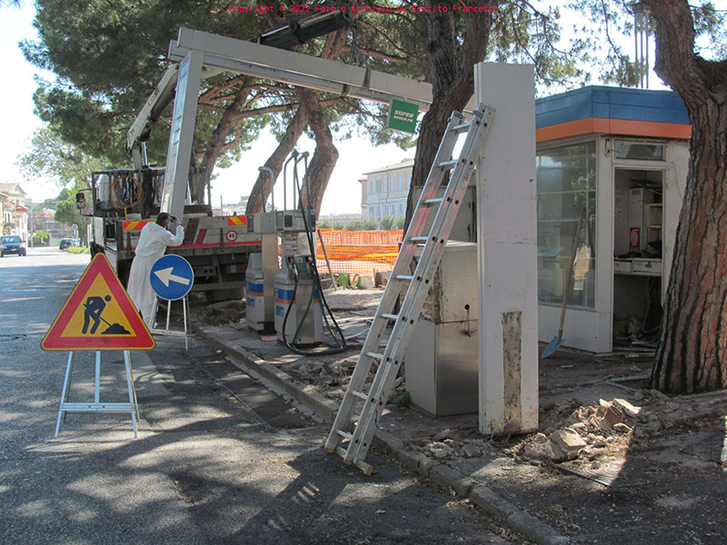Foto Notizia: iniziata la rimozione dell’ex distributore di via Rossini a Senigallia
