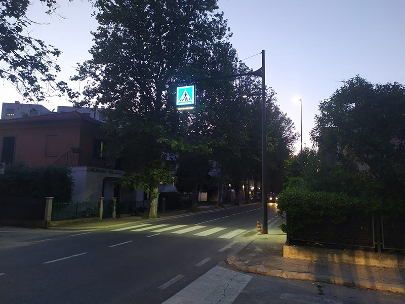Attivo attraversamento pedonale illuminato a Senigallia in Via Capanna angolo Via Rosmini