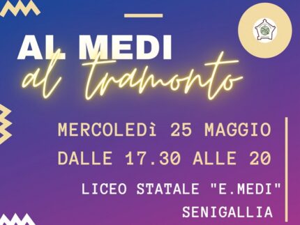 Il giorno 25 Maggio a partire dalle ore 17.30 alle 20 presso il Liceo “E.Medi” si svolgerà l’iniziativa “Al Medi, Al tramonto” un pomeriggio dedicato alle arti performative ideato e coordinato dalla prof.ssa Francesca Berardi.