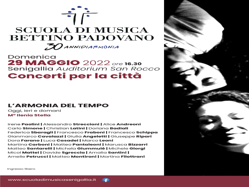 La scuola di musica ‘Scuola di Musica Bettino Padovano’ di Senigallia prosegue nel viaggio musicale per festeggiare i suoi trent’anni di vita, iniziato nel dicembre scorso.
