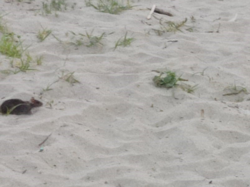 Topo sulla spiaggia di Senigallia, accanto al porto