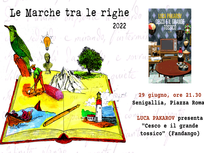 Mercoledì 29 giugno alle 21.30 Luca Pakarov presenterà “Cesco e il grande tossico” (edito da Fandango) presso Piazza Roma a Senigallia. L’autore dialogherà con Andrea Bacianini.