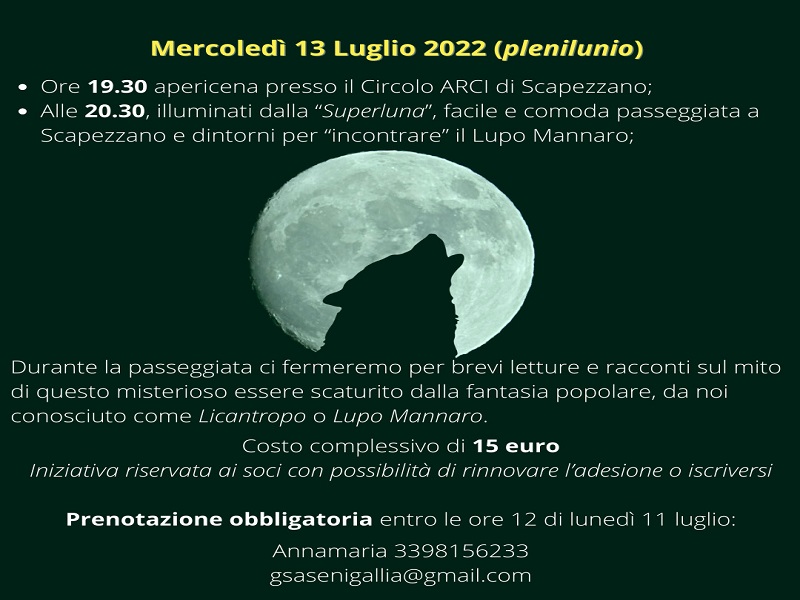 Il lupo e la luna, mercoledì 13 luglio incontro al circolo Arci di Scapezzano