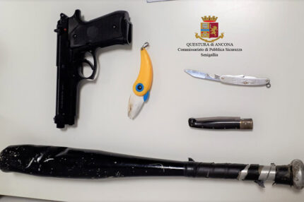 Alla luce del racconto fornito e dell’intento manifestato dai due, i poliziotti li hanno sottoposti ad un approfondito controllo, ispezionando anche una delle due bici munita di borse. In questo modo è stata rinvenuta una riproduzione fedele in metallo della pistola semiautomatica marca Beretta modello 92/FS priva del previsto tappo rosso, che poteva a tutti gli effetti trarre in inganno chi la vedesse, mentre nella tasca destra dei pantaloni gli agenti hanno trovato un coltello pieghevole.