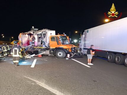 I Vigili del fuoco sono intervenuti alle ore 22.45 circa di ieri sera in Autostrada A.14 tra i caselli di Ancona Nord e Senigallia in direzione Nord a causa di un mezzo pesante che per motivi che sono in fase di accertamento è andato a sbattere contro le barriere che delimitano le corsie dell’Autostrada.