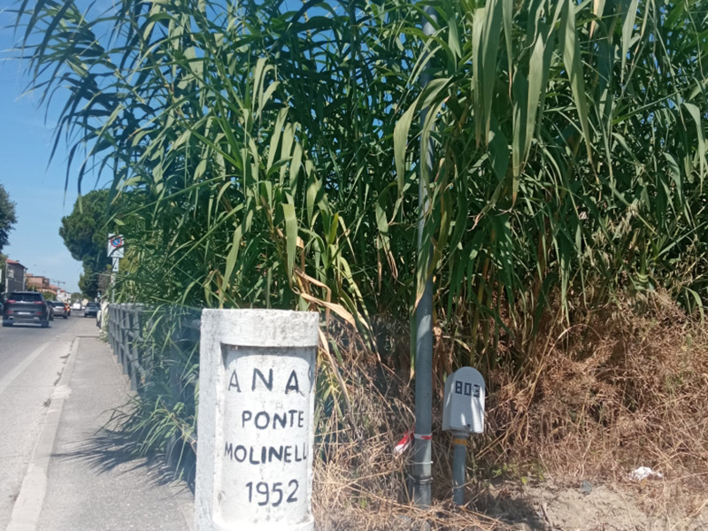 Più che “fosso” dovrebbe essere chiamato “canneto” ed è una bellissima cartolina di ingresso da nord nella nostra città: sterpaglie alte, canne altissime, colore giallo dominante. Chissà perché questo fosso, uno dei più visibili perché attraversa una parte della città molto trafficata, è pulito al termine della stagione estiva e non uno/due mesi prima dando così una immagine meno da “giungla” della nostra città ai turisti.
