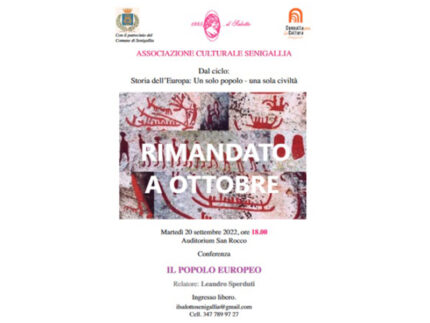 A causa della disastrosa alluvione che ha colpito tante persone a Senigallia e nelle zone limitrofe l’associazione Il Salotto ha rimandato la prima conferenza del nuovo ciclo “Il popolo Europeo” alla prossima data in programma l’11 ottobre.