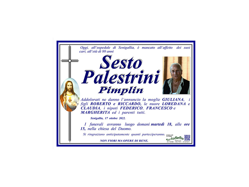 Oggi, all’ospedale di Senigallia, è mancato all’affetto dei suoi cari, all’età di 80 anni Sesto Palestrini Pimplin.