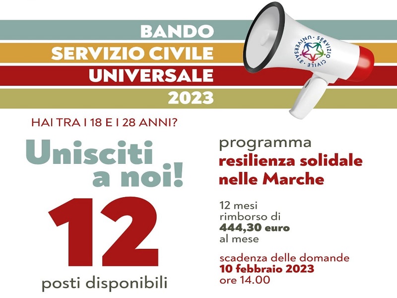 Sono 12 i posti messi a disposizione dalla Cooperativa nell’ambito del progetto “Resilienza solidale nelle Marche”.