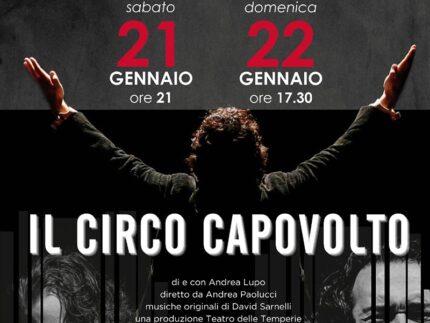 Liberamente tratto dall’omonimo romanzo di Milena Magnani, con la direzione di Andrea Paolucci, in scena Andrea Lupo, “Il Circo capovolto” è una produzione Teatro delle Temperie ed è vincitore del Roma Fringe Festival 2017 per miglior drammaturgia, miglior attore e premio del pubblico.