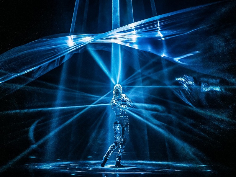 “L’acqua scorre, danza e fluttua compiendo viaggi meravigliosi – si legge nella presentazione dello spettacolo –. Scopre sentieri nascosti per poi fluire nel blu infinito dove incontra creature fantastiche e animali acquatici. Non esiste gravità ma solo un bellissimo volo libero. Il blu infinito è l’origine di ogni metamorfosi, muta di forma e densità, avvolge le sue misteriose creature in un sensuale e travolgente abbraccio.