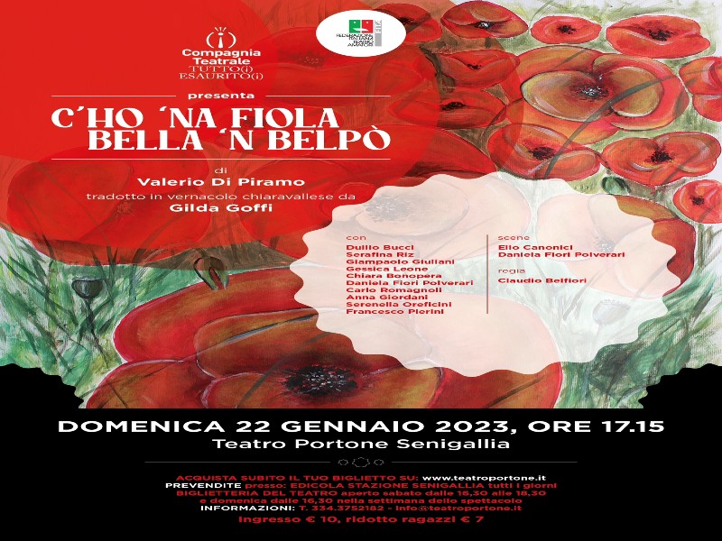 Si inizia domenica 22 gennaio alle ore 17.15 con “C’ho ‘na fiola bella ‘n belpò”, della Compagnia “Tutto(i) Esaurito(I)” di Chiaravalle. I titolari di un’agenzia di pompe funebri, Felice Vinterro e sua moglie Ofelia, escogitano un metodo non convenzionale per attirare clienti futuri, sfruttando i moderni social, dei “facilitatori” e l’aspetto di loro figlia, Selvaggia, a dire il vero un po’ bruttina. In agenzia, tra addobbi colorati e fiori, si presenterà Sempronio, un giovane un po’ malconcio che a tutto pensava fuorché a preparare il suo funerale. Ma a cadere nella trappola della famiglia Vinterro saranno anche altri personaggi, che contribuiranno a creare un crescendo di equivoci, fino a far passare l’attività per un’agenzia matrimoniale. E c’è anche chi ne uscirà con le ossa letteralmente rotte! E la figlia bellissima del titolo? Beh, lo scoprirete…