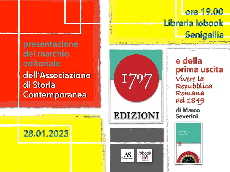 Tornando al nuovo marchio sarà la direttrice scientifica dell’ente, prof.ssa Lidia Pupilli, a tenerlo a battesimo: la storica spiegherà le tappe che hanno portato al varo di questa novità, le Collane in cui si articola, le sinergie raccolte e tutto il resto. L’evento costituirà anche l’occasione per conoscere il primo libro del nuovo marchio, “Vivere la Repubblica romana del 1849” (Ed. 1797, 2023, pp. 220) di Marco Severini, libro che si avvicina velocemente alla seconda edizione, viste le numerose richieste pervenute.