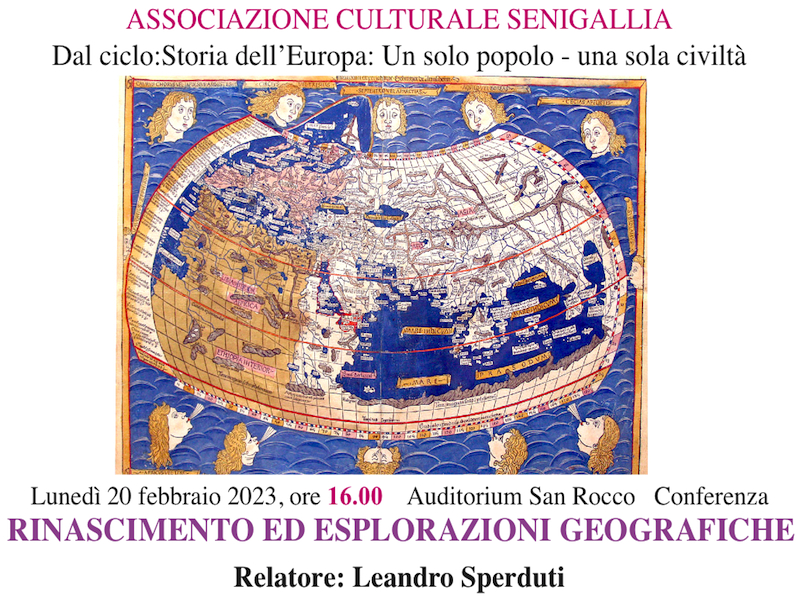 L’associazione il Salotto comunica, che la conferenza con lo storico Leandro Sperduti “Rinascimento ed esplorazioni geografiche” si terrà lunedì 20.02 e non, come scritto nel programma, martedì 21.02.