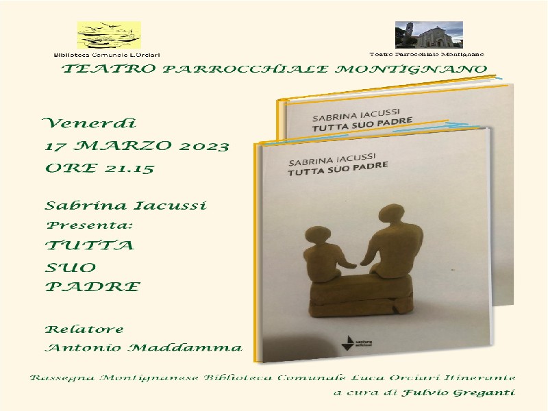 Venerdì 17 mazo alle ore 21,15 presso il salone parrocchiale verrà presentato il libro “TUTTA SUO PADRE” di Sabrina Iacussi.