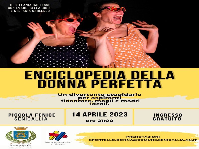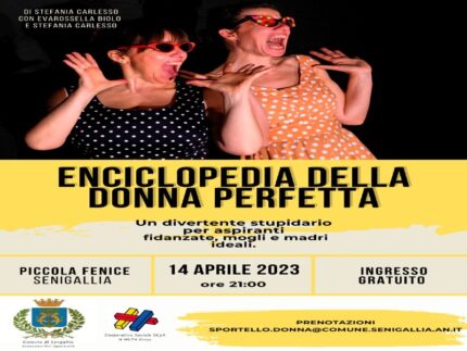 Il Comune di Senigallia in collaborazione con H MUTA Cooperativa Sociale presenta lo spettacolo ENCICLOPEDIA DELLA DONNA PERFETTA di e con Stefania Carlesso e con Evarossella Biolo distribuito da Luisa Trevisi – Idee che danno spettacolo.