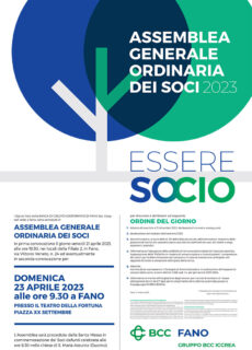 Sono i principali argomenti all’ordine del giorno dell’Assemblea Generale Ordinaria dei Soci della Banca di Credito Cooperativo di Fano in programma domenica 23 aprile alle 9,30 al Teatro della Fortuna. L’appuntamento sarà preceduto dalla messa in commemorazione dei soci defunti e celebrata alle 8,30 nel duomo di Fano.