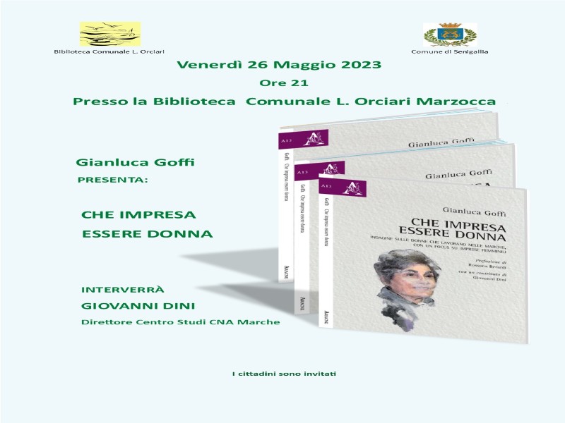 Venerdi 26 maggio, ore 21, verrà presentato il libro di Gianluca Goffi:”Che Impresa Essere Donna”.