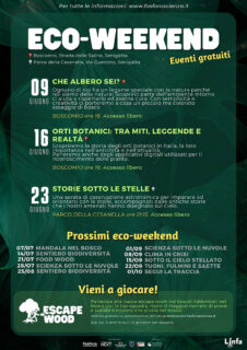 Sempre attivo l’Escape wood (prenotazioni via email a prenotazioni@fosforoscienza.it per concordare ora e giorno), un turismo esperienziale dentro al bosco per persone con più di 13 anni a metà tra natura, cultura e digitale, che prevede giochi interattivi e la risoluzione di curiosi enigmi a tema ambientale – LINFA è un progetto che cerca di costruire una comunità attraverso una progettazione partecipata nell’ottica di una rigenerazione ambientale e sociale, coinvolgendo due parchi della città, Bosco Mio e il Parco della Cesanella. Mescolare pubblico e privato, eccellenze universitarie, enti del terzo settore, associazioni giovanili e culturali, è fondamentale per motivare e orientare giovani e cittadinanza a una partecipazione attiva, una sorta di nuova “linfa”, appunto, che dimostri il suo interesse per le tematiche ambientali, la tutela del verde pubblico e dei suoi ecosistemi naturali.