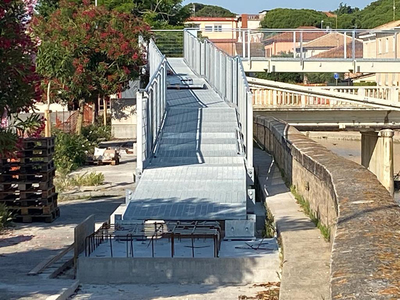 Rampa di accesso al ponte ciclopedonale provvisorio sul Misa