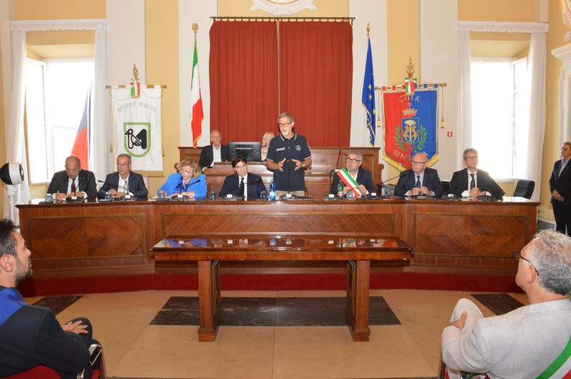 Nel primo pomeriggio la delegazione guidata dal ministro Musumeci e dal presidente Acquaroli ha incontrato a Senigallia nella sala del Consiglio comunale i sindaci dei Comuni coinvolti negli eventi alluvionali. La seconda tappa si è svolta poi con i sindaci della provincia di Pesaro-Urbino nella sala del Consiglio del Comune di Pesaro.