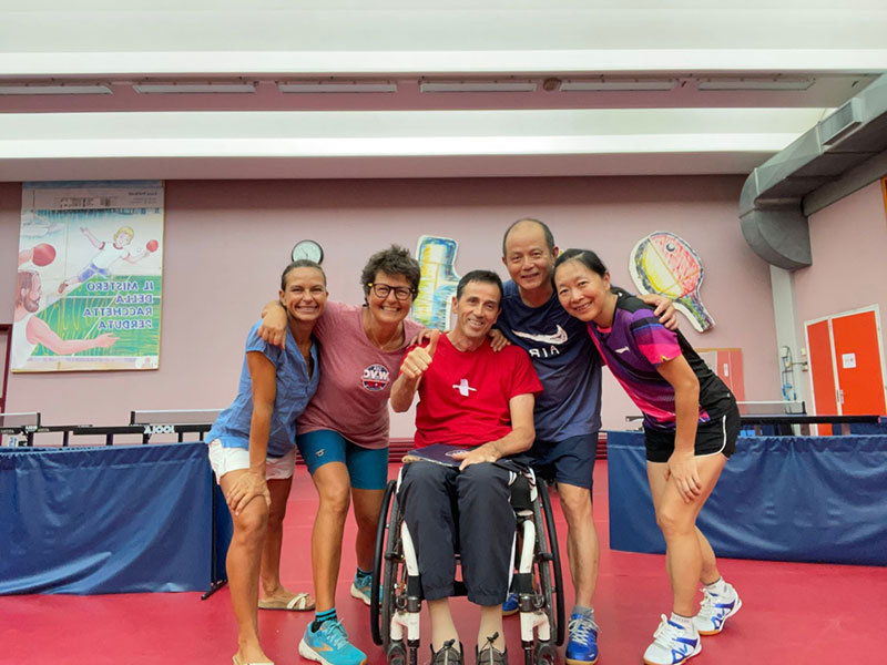 “Bellissimo, questo è il tempio del ping-pong” dice Wang al maestro. “Con voi questo lustro aumenta” risponde Enzo. Insomma, rispetto reciproco. Mentre si allenano sotto lo sguardo attonito dei ragazzi e degli amatori, Giancarlo, nostro atleta in carrozzina, si complimenta con loro, che si soffermano con lui spiegandogli il loro allenamento. Sono sempre con il sorriso sulle labbra disponibili con tutti, come dei veri campioni. Sabrina conclude “E’ il terzo anno che vengono a Senigallia per le loro ferie, siamo contenti speriamo di vederli ancora”.