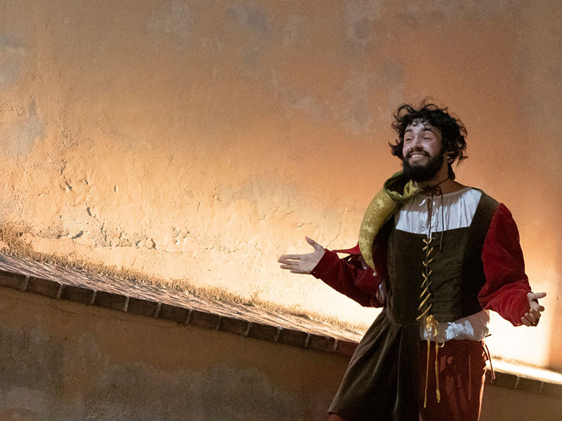 Un raffinato e colto recital dai toni spiritosi, uscito dalla mente dell’attore e regista Mauro Pierfederici. L’artista ogni anno regala alla manifestazione una performance in linea con il tema scelto, di grande spessore. Quest’anno non sarà da meno raccontando di giullari, figure iconiche ma trattate sempre in modo troppo superficiale. Tra il serio e il faceto, Mauro insieme all’attore Alessio Messersì, proveranno a fare luce su questo personaggio che pare non potesse proprio mancare all’interno di un palazzo rinascimentale. La suggestione sarà potentissima grazie anche alle scene animate dai personaggi de Il Solenne Ingresso e le musiche dai rimandi antichi suonate da Roberto Chiostergi e cantante dalla talentuosa Antonella Vento.
