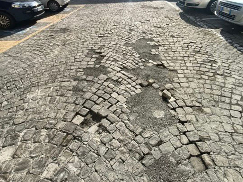 L’intervento è finalizzato alla sistemazione della pavimentazione della piazza che da tempo versa in cattive condizioni di conservazione, tanto da costituire un serio pericolo soprattutto per i pedoni, per coloro che girano in bicicletta ed anche per i veicoli che transitano in zona.