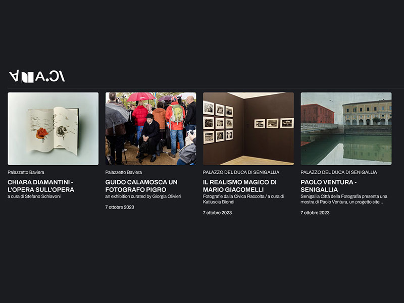 Un percorso vario e ricco di stimoli diversi, quello proposto, che celebra la grande tradizione fotografica senigalliese con la mostra permanente IlRealismo magico di Mario Giacomelli, valorizza i talenti locali con la mostra Guido Calamosca, un fotografo pigro, e allo stesso tempo esce dal mondo della fotografia per proiettarsi nelle affascinanti dinamiche poetico-visuali di Chiara Diamantini, che con L’Opera sull’opera analizza il rapporto tra parola e immagine.