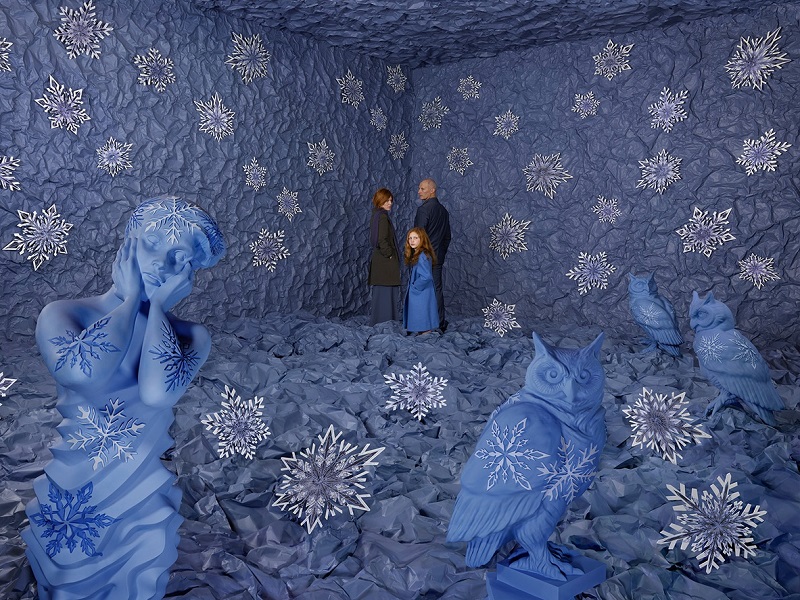 Proprio “Winter” è protagonista di un focus nell’esposizione senigalliese: oltre alla fotografia omonima verrà ricreato in mostra il setting di realizzazione, con gli sfondi e alcune delle sculture originali usate da Skoglund, per permettere ai visitatori di entrare letteralmente nell’opera e scoprire da vicino la minuzia di dettagli e l’incredibile lavoro che si cela dietro a uno scatto solo apparentemente istantaneo.