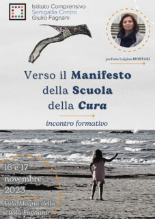 L’Istituto Comprensivo Senigallia Centro è lieto di ospitare, il 16 e 17 novembre prossimi, due giornate formative con la professoressa Luigina Mortari sul tema “Verso il Manifesto della Scuola della Cura”.