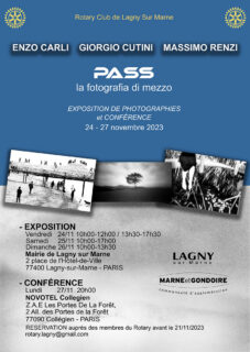 Enzo Carli, Giorgio Cutini e Massimo Renzi, già fotografi del “Manifesto Passaggio di Frontiera”, sono stati invitati dal sig. Michel Dubois per conto del Rotary Club International, ad esporre le loro opere a partire dal 24 novembre 2023 presso il Municipio parigino di Lagny Sur Marne, e a condurre una conferenza il giorno 27 novembre 2023 presso il Novotel di Collegien – Paris sulle tematiche presentate.