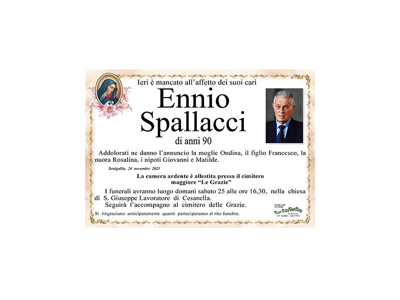 Ennio Spallacci è mancato all’affetto dei suoi cari il 23 novembre 2023