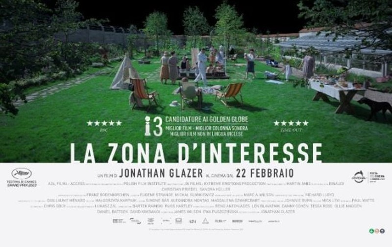 Presentato in concorso all’ultimo Festival di Cannes come coproduzione anglo-polacca, il film ha registrato un consenso straordinario poiché assolutamente unanime da parte della critica. Glazer è riuscito a trovare un nuovo punto di vista da cui sviluppare il suo racconto: Auschwitz è così solo lo sfondo della scenografia, un luogo sempre presente ma dove non si accede. L’opera è quindi un purissimo esempio di sottrazione visiva, accompagnata però da una immersione sonora nei rumori del campo di sterminio, che risultano decisamente invadenti. Tutto questo mentre di fatto intorno al campo resiste una vita assolutamente bucolica, dove tutto scorre in armonia, mentre Auschwitz appare quasi una fabbrica come tante altre…