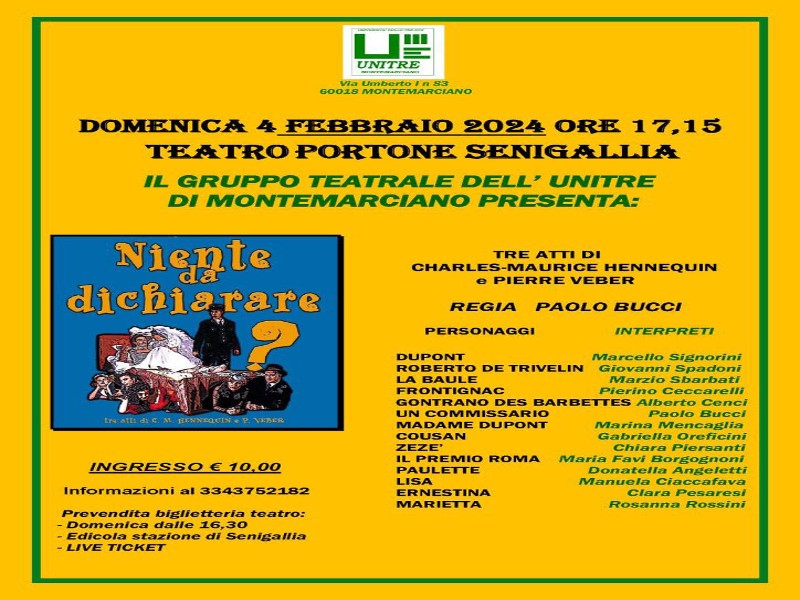 “Niente da dichiarare” al teatro Portone di Senigallia