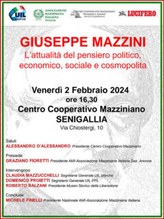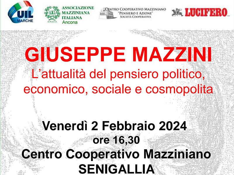 L’evento “Giuseppe Mazzini l’attualità del pensiero politico, sociale ed economico” è il risultato della fattiva e proficua collaborazione tra UIL Marche, Associazione Mazziniana Italiana sezione di Ancona, Lucifero giornale repubblicano fondato nel 1870 e Centro Cooperativo Mazziniano “Pensiero e Azione” di Senigallia.