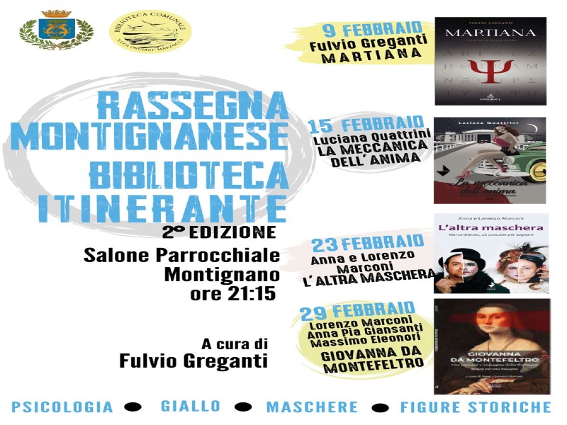Dal 9 Febbraio sempre alle ore 21,15 parte la seconda edizione della rassegna di libri sotto il teatro parrocchiale di Montignano.