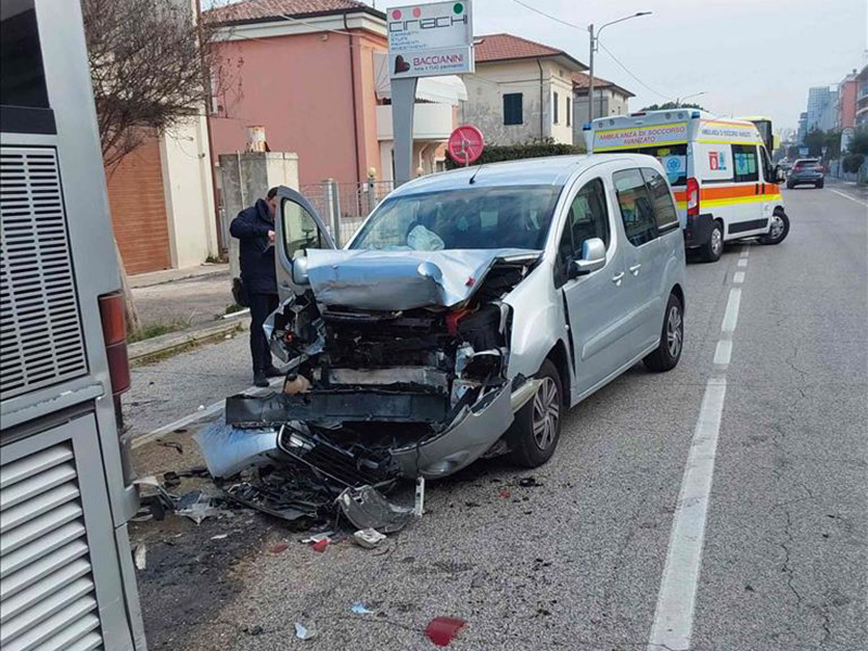 Auto tampona bus di linea a Senigallia: lesioni per un 80enne, in ospedale a Torrette