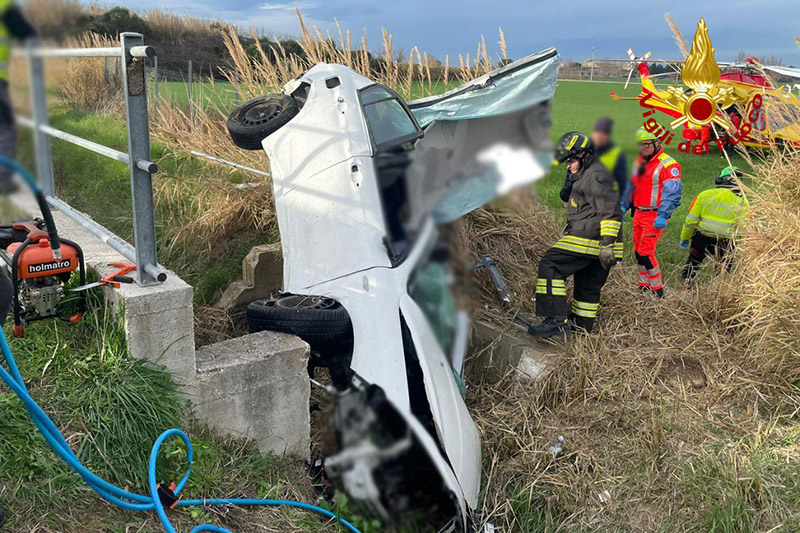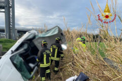 La vettura, uscendo dalla sede stradale mentre percorreva la corsia nord nel tratto parallelo a via Fiorini, all’altezza di Cesano di Senigallia, è finita in un fossato a lato dell’A-14.
