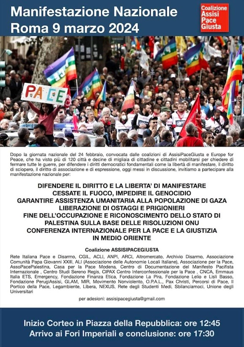 9 marzo 2024: manifestazione nazionale a Roma per la Pace