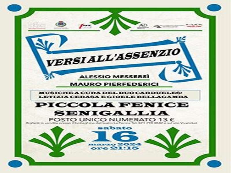La rassegna “In scena senza scena” prosegue sabato 16 marzo, alle 21:15, alla Piccola Fenice di Senigallia con “Versi all’assenzio”.