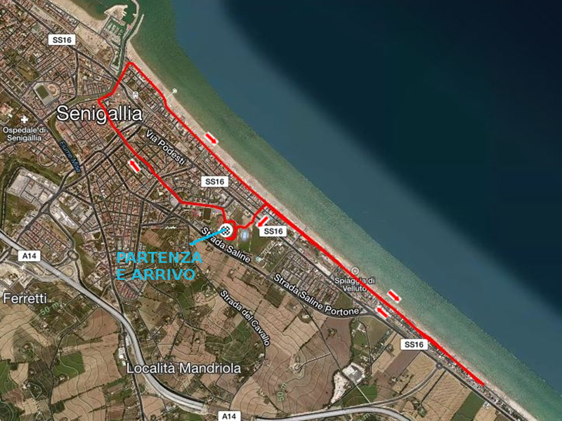 Il percorso prevede partenza e arrivo dalla pista di atletica in zona Saline, l’attraversamento del centro storico (Corso 2 Giugno) transito sul lungomare di levante dalla zona porto, con passaggio di fronte alla Rotonda e giro di boa all’altezza del Hotel Diana e ritorno con arrivo in pista. La gara competitiva partirà alle ore 09:30 ed avrà un tempo massimo di ore 1:30, periodo nel quale nei punti interessati dalla manifestazione è previsto il blocco della circolazione stradale. Il percorso misura 10 km esatti interamente pianeggianti.