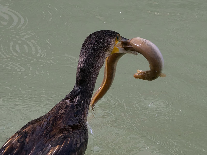 Cormorano cattura anguilla a Senigallia - Foto Leonardo Luconi